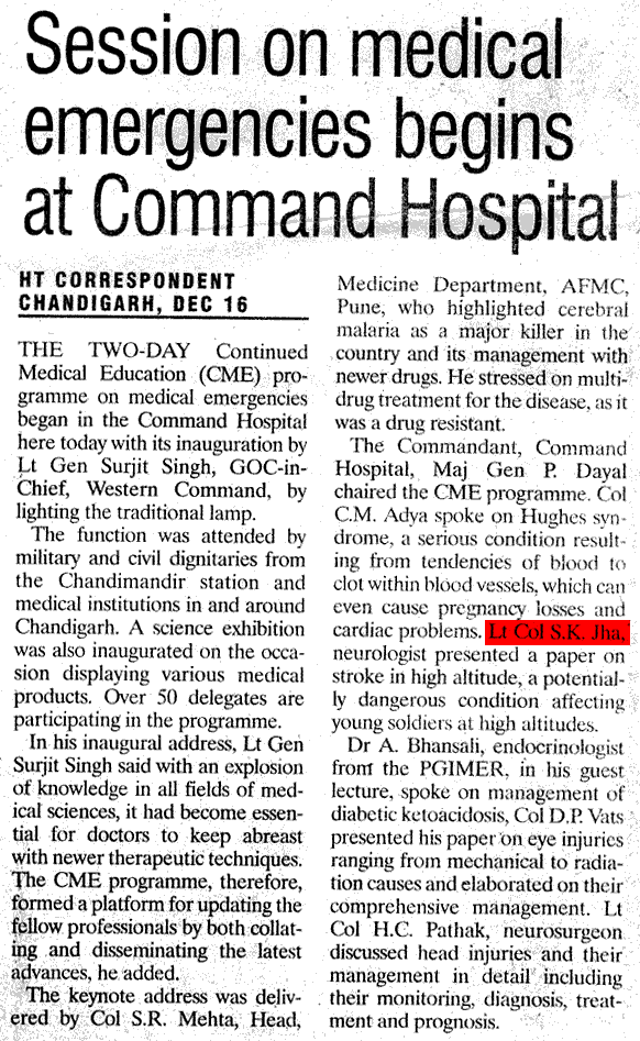Jha SK, Med Jour Armed Forces India
