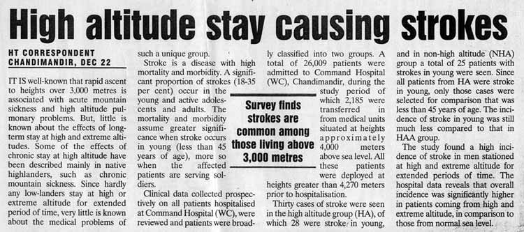 Stroke at High Altitude: Indian Experience